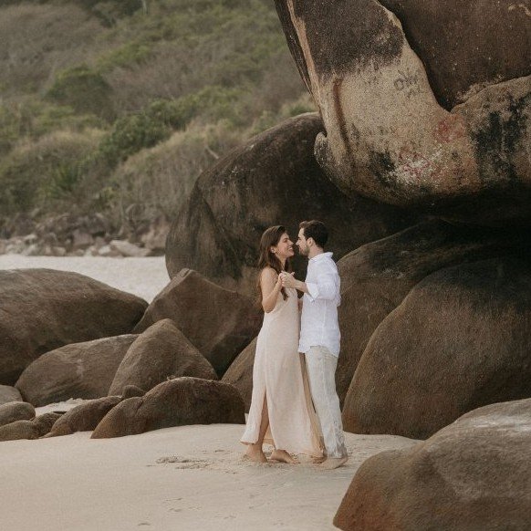 O traje para o casamento é passeio completo. Para as mulheres, aconselhamos salto bloco visto que a cerimônia acontecerá no gramado.